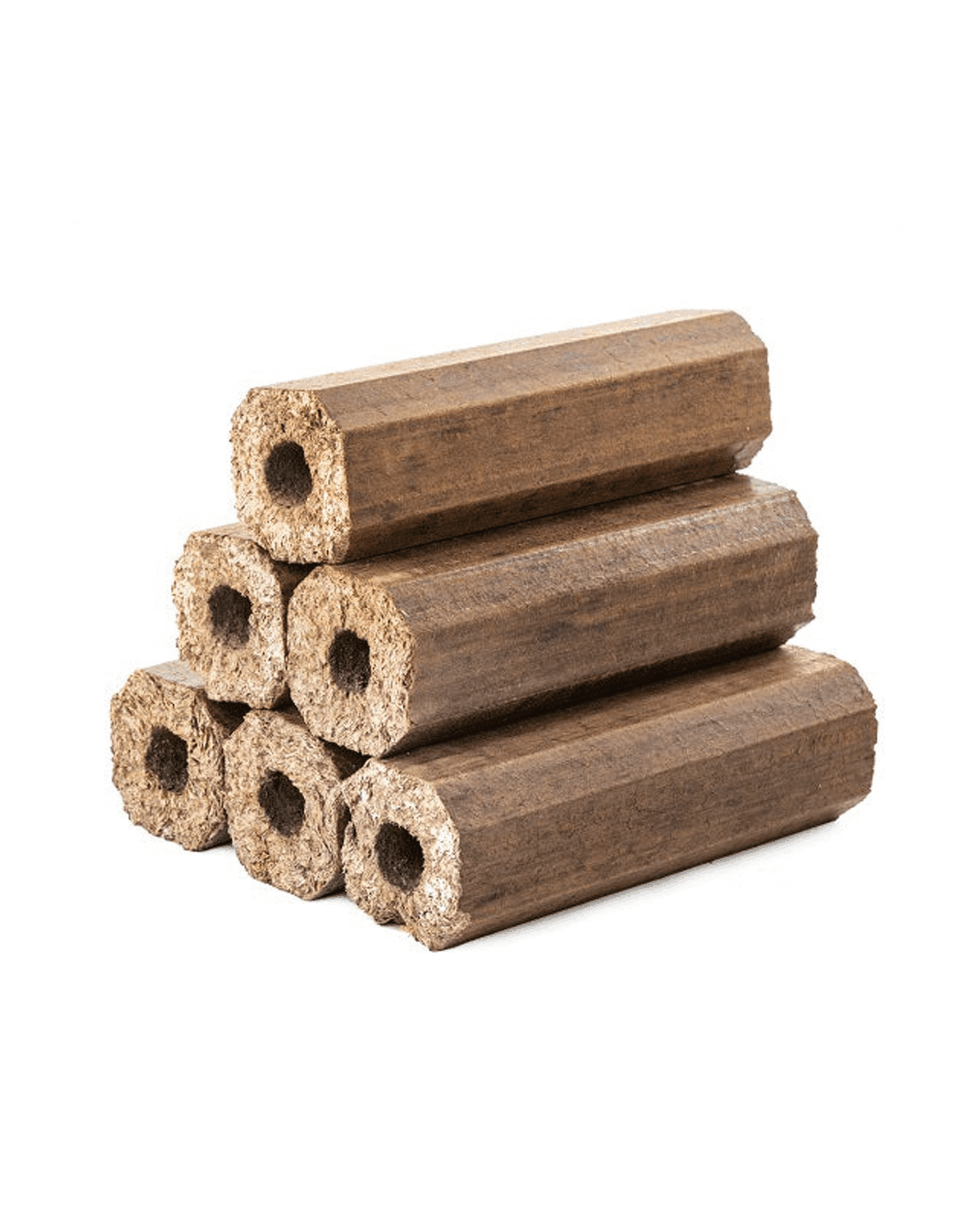 Pini Kay træbriketter er lavet af 100 % rent og tørt hårdttræssavsmuld uden tilsætningsstoffer. Den sekskantede form med hul i midten giver effektiv luftgennemstrømning, hvilket sikrer jævn og stabil forbrænding.